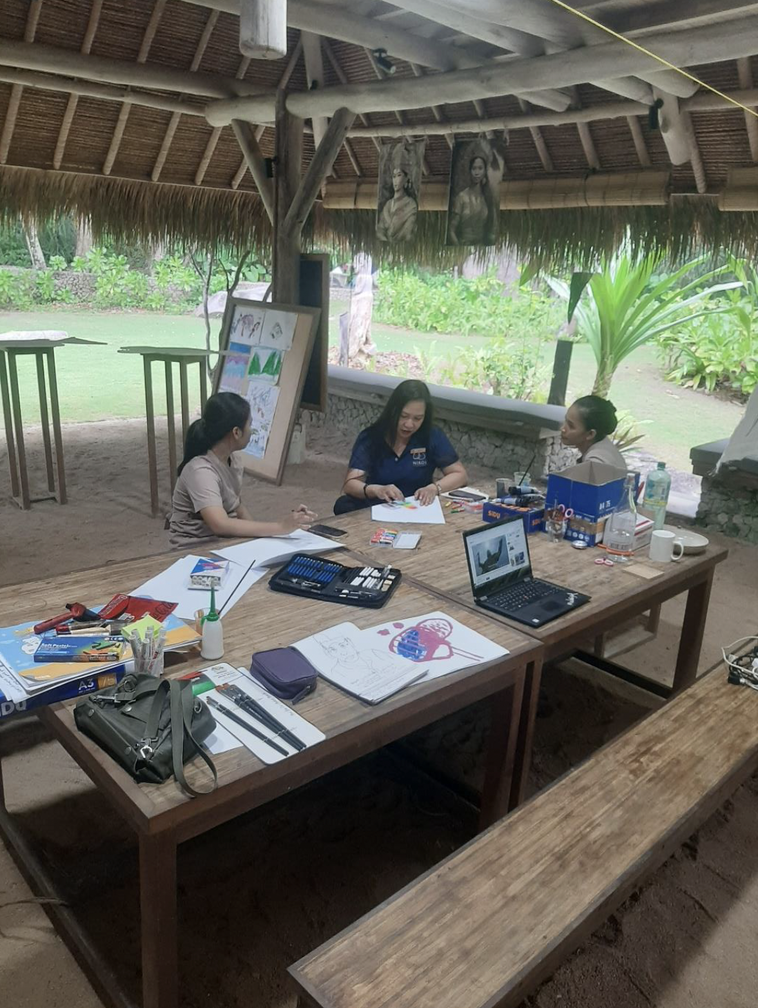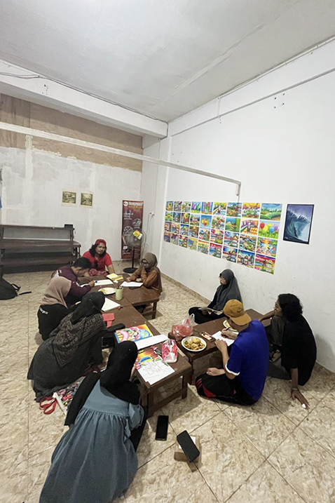 I held this activity the day after arriving on the island. I presented my project to the local community as a way to introduce myself and the activities I would be pursuing during the art residency program on Nikoi Island. I held the sharing session four weeks into the program, visiting an arts community called Samesmart in downtown Tanjung Pinang. They are young people with diverse educational backgrounds but united by their passion for art. Their regular activities include working together at their base camp or engaging in outdoor activities while creating their artwork. They also frequently hold events in public areas to introduce their community to the public. Mural creation is also a common activity for them when invited to events in their city.