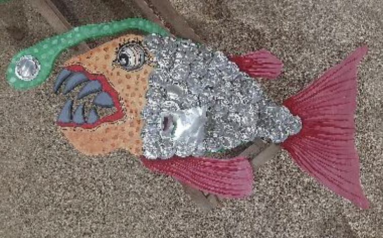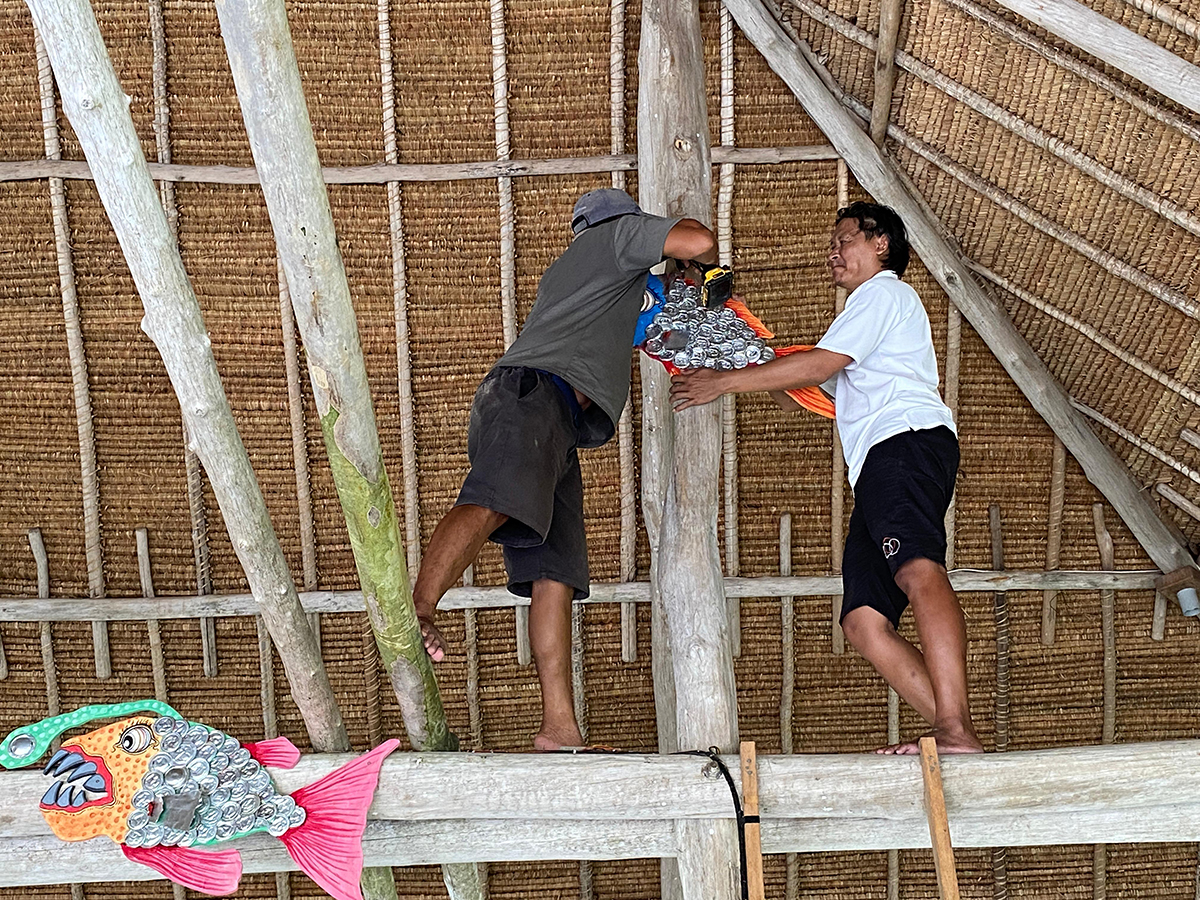 From the beginning, the proposal I submitted for this program was related to the Plasticology art project that I had worked on in Bali, working using unused materials to reflect today's conditions and situations. That's why the scales on mermaids and fish use soda cans as a symbol of post-consumer objects, which, if not processed properly, can pollute and threaten the ecosystem and environment.