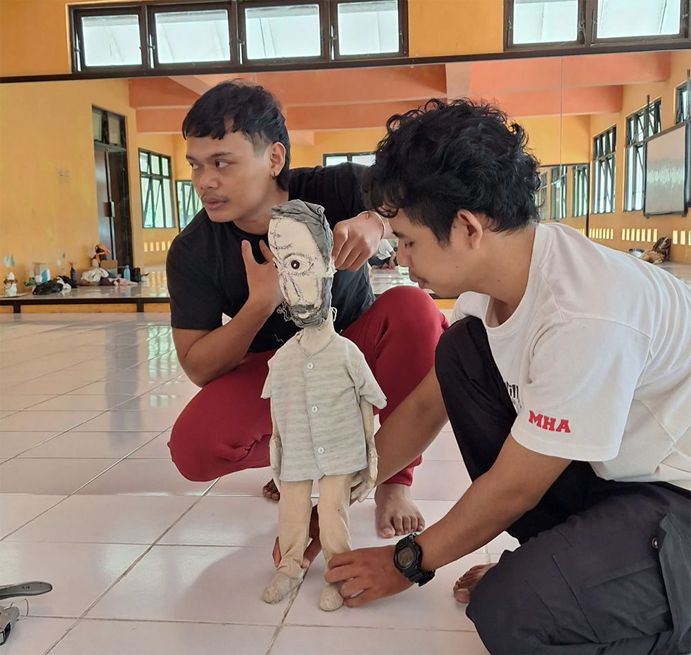 Rangga Dwi Apriadinnur founded Flying Balloons Puppet in Bantul, Yogyakarta, in 2015. Graduated from the Art Institute of Indonesia Yogyakarta with a major in Acting in 2018, he directs many of the company’s productions (solo and collaborative) and is known for integrating puppetry, object theatre, non-verbal storytelling, and everyday spaces to explore ecological, memory, and identity themes.