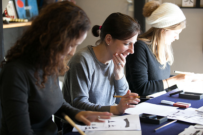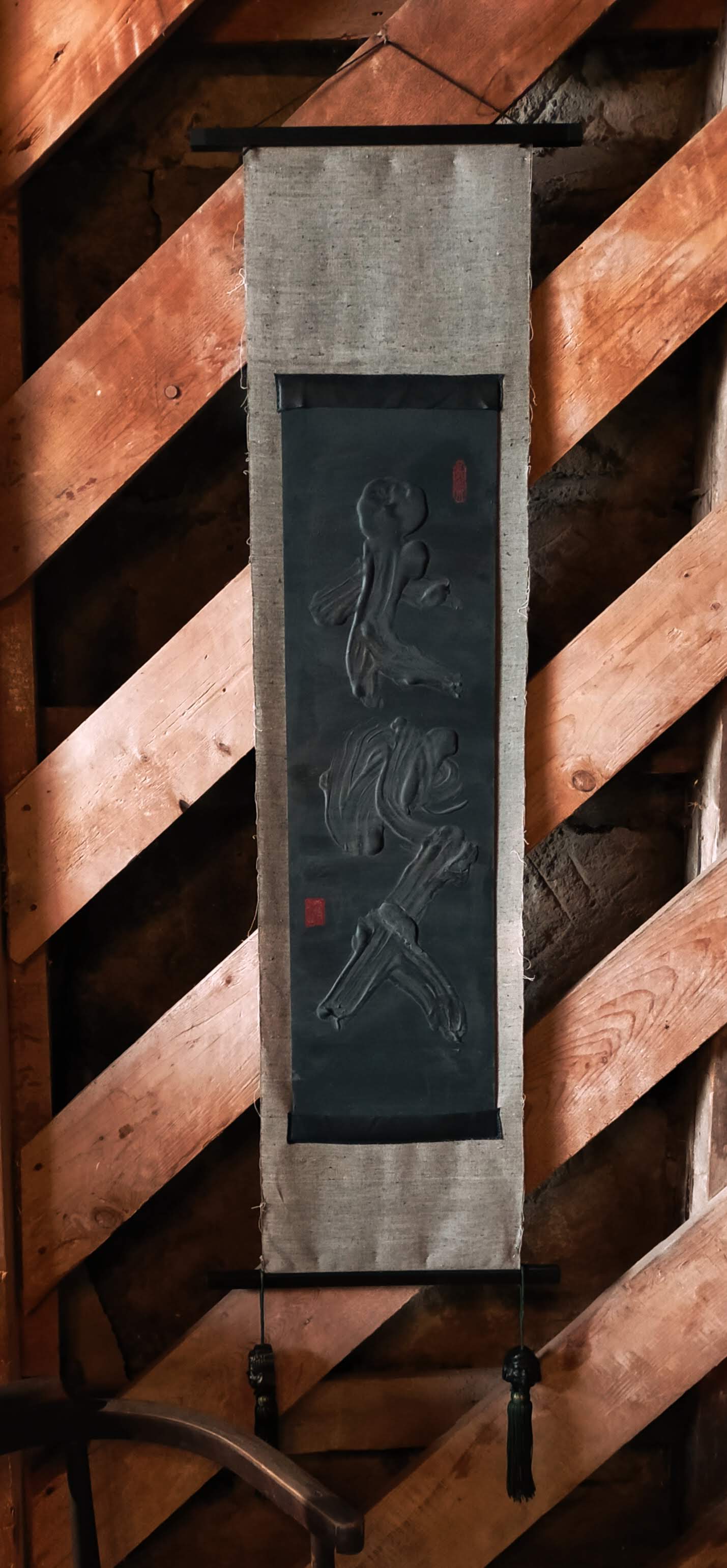 Based between Hokkaido (Asahikawa) and Tokyo, Soufu has held solo exhibitions, performed calligraphic performances internationally, and collaborated on design projects — ranging from corporate lettering and store logos to interior art.